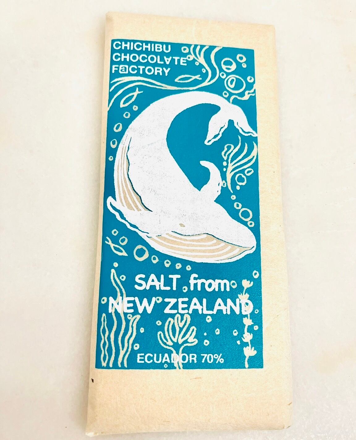 エクアドル産カカオにニュージーランドのフレーキーシーソルトを加えたカカオ70%の塩チョコレート。