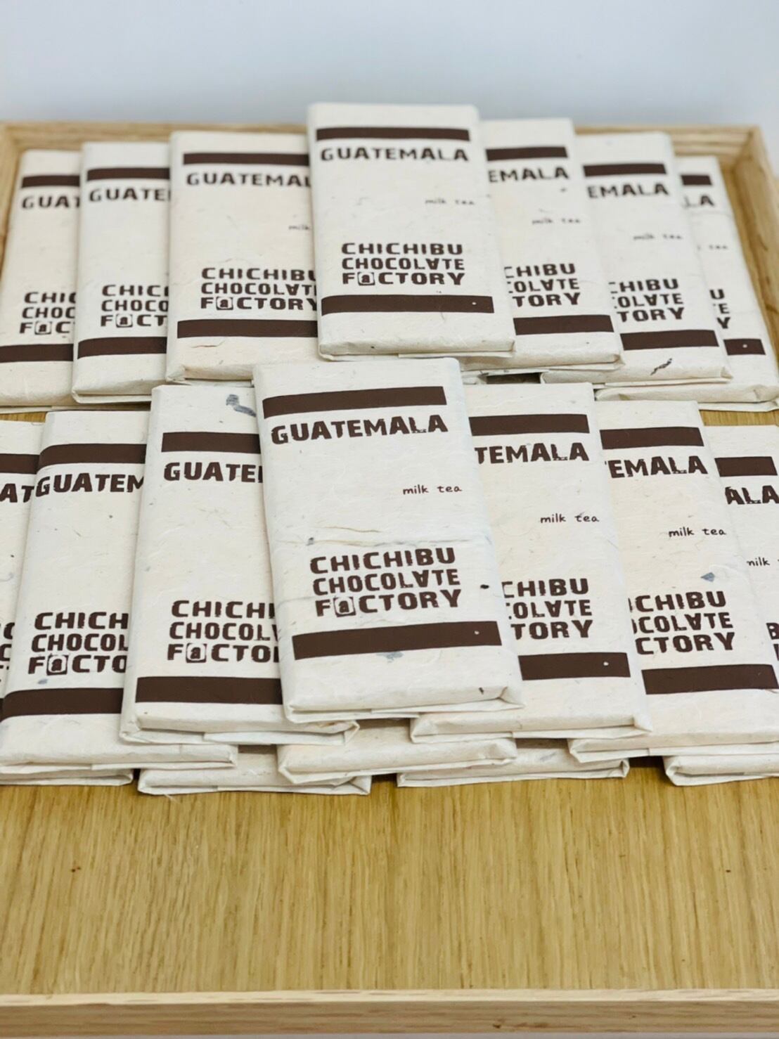 グァテマラ産カカオと北海道産の全粉乳に秩父産の紅茶を練り込みました。milk teaのようなチョコレートです。